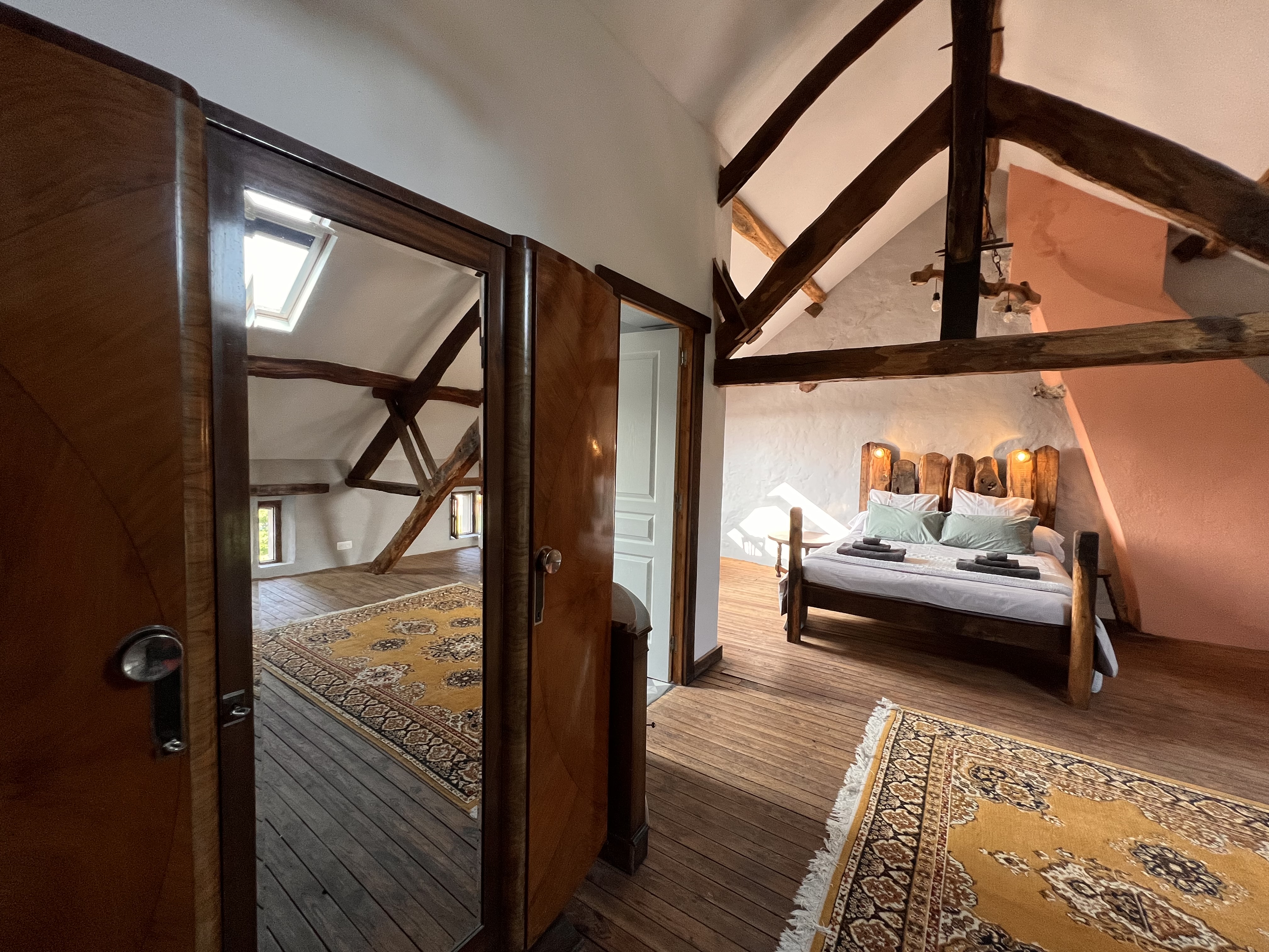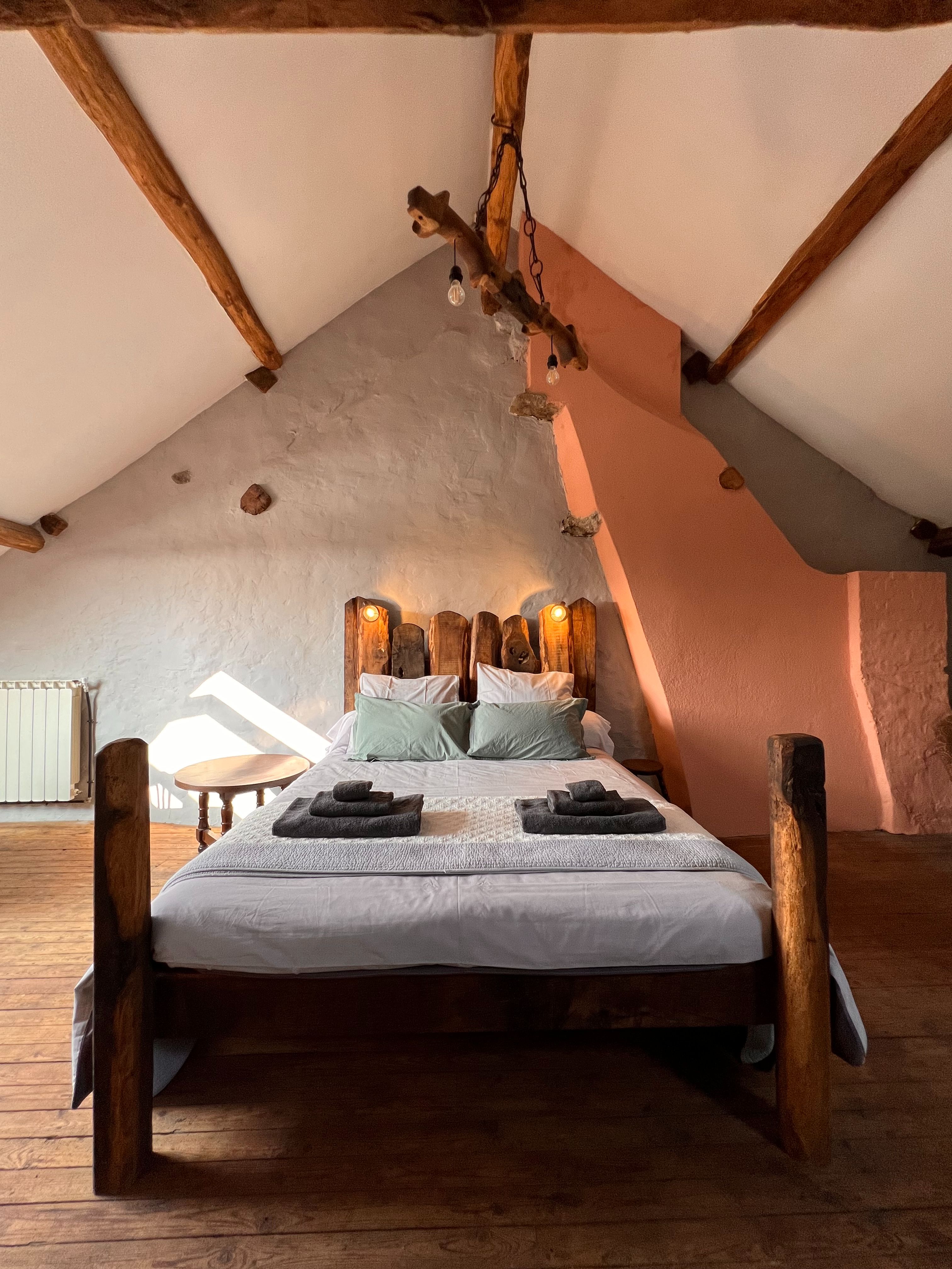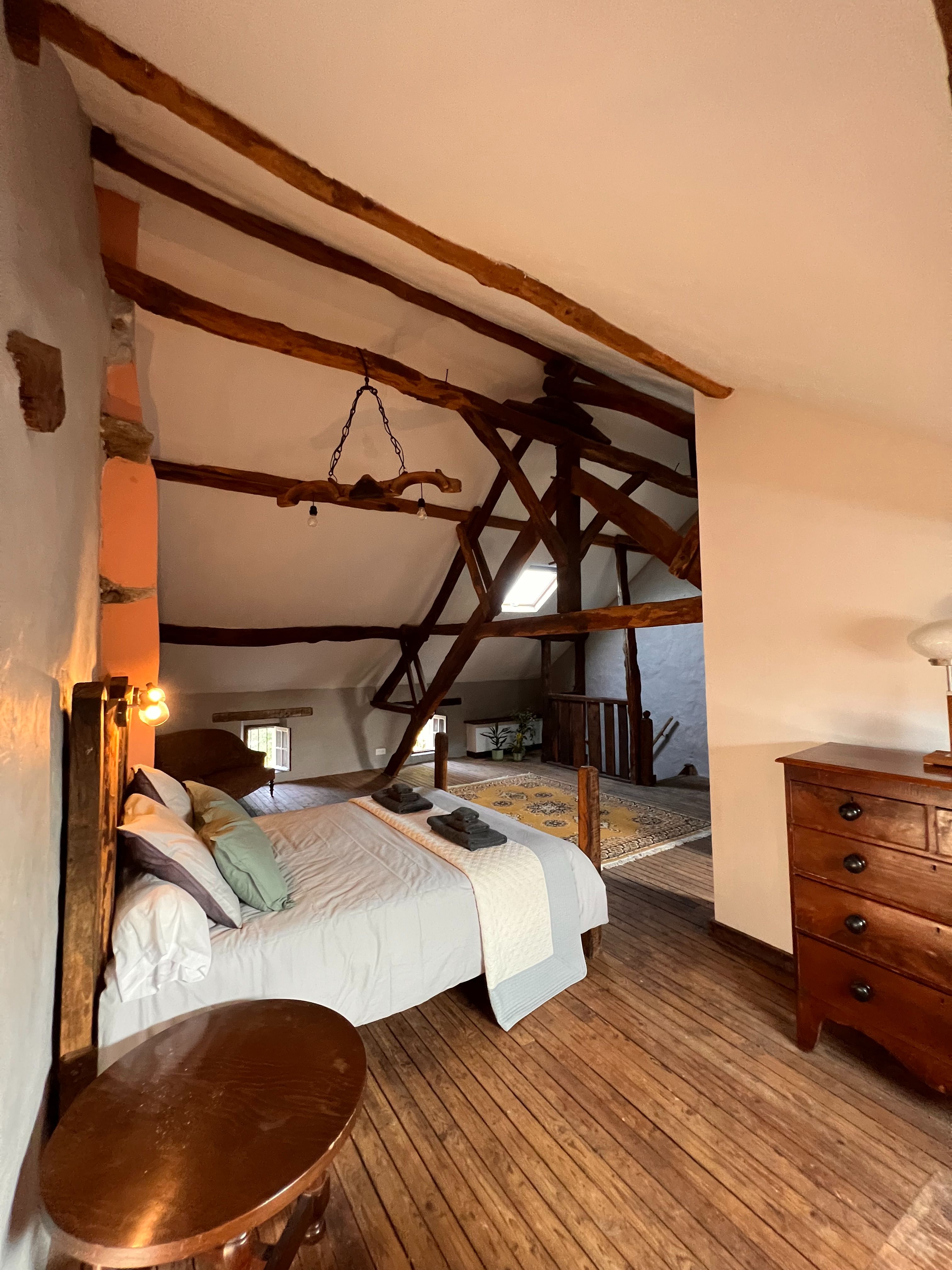 Grand lit king-size dans la chambre du grenier
